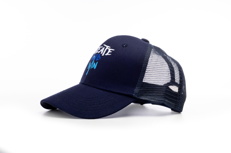 Бейсболка с вышивкой темно синяя сетка